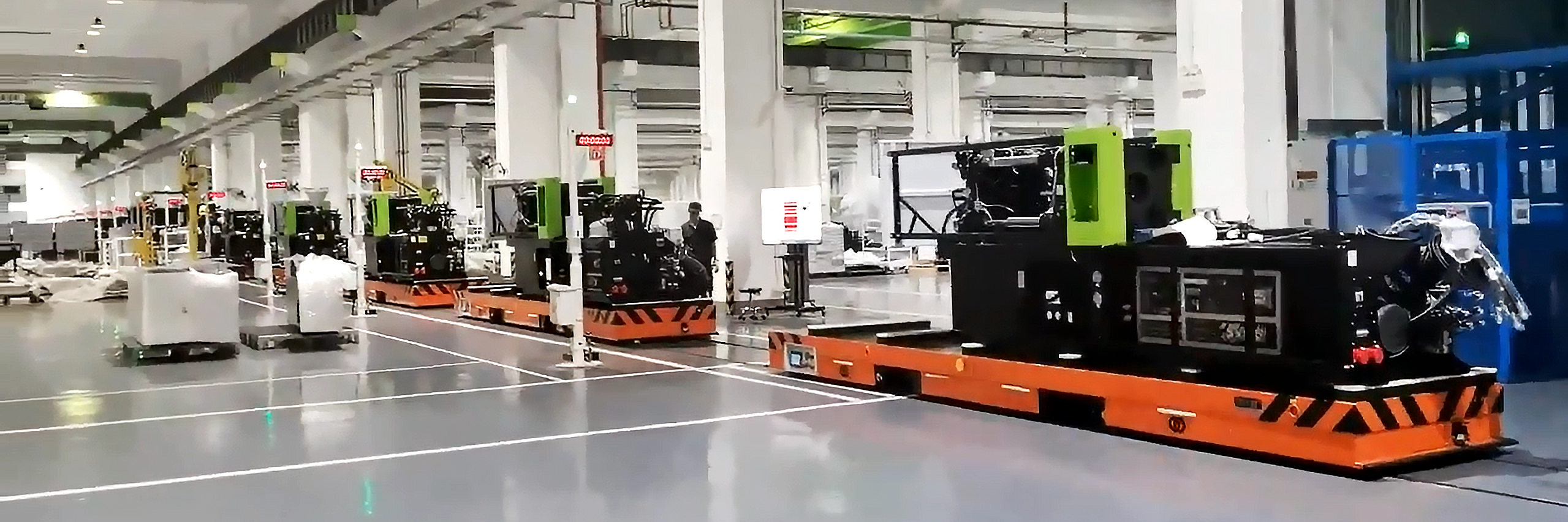 Our client, a leading injection molding machine manufacturer in Guangdong, China, was building a new facility with two parallel production lines. Their goal is to automate the transfer of product components between designated workstations on both lines, with minimal manual operation and high transport frequency.