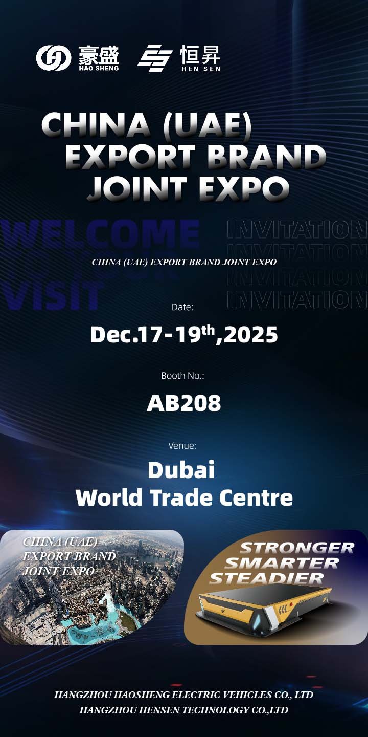 We are pleased to invite you to visit Hangzhou HENSEN Technology Co., Ltd. at the upcoming CHINA (UAE) EXPORT BRAND JOINT EXPO in Dubai. As a leading global manufacturer of custom heavy-duty AGVs, RGVs, electric industrial vehicles, and intelligent logistics solutions, HENSEN will showcase its latest technologies designed for modern industrial handling and smart factory upgrades.